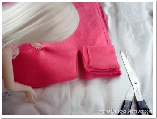 The corners are then cut off in little squares about two inches by two inches. These measurements are based on my just under 18 inch stature and should be adjusted accordingly to other sized dolls or persons.